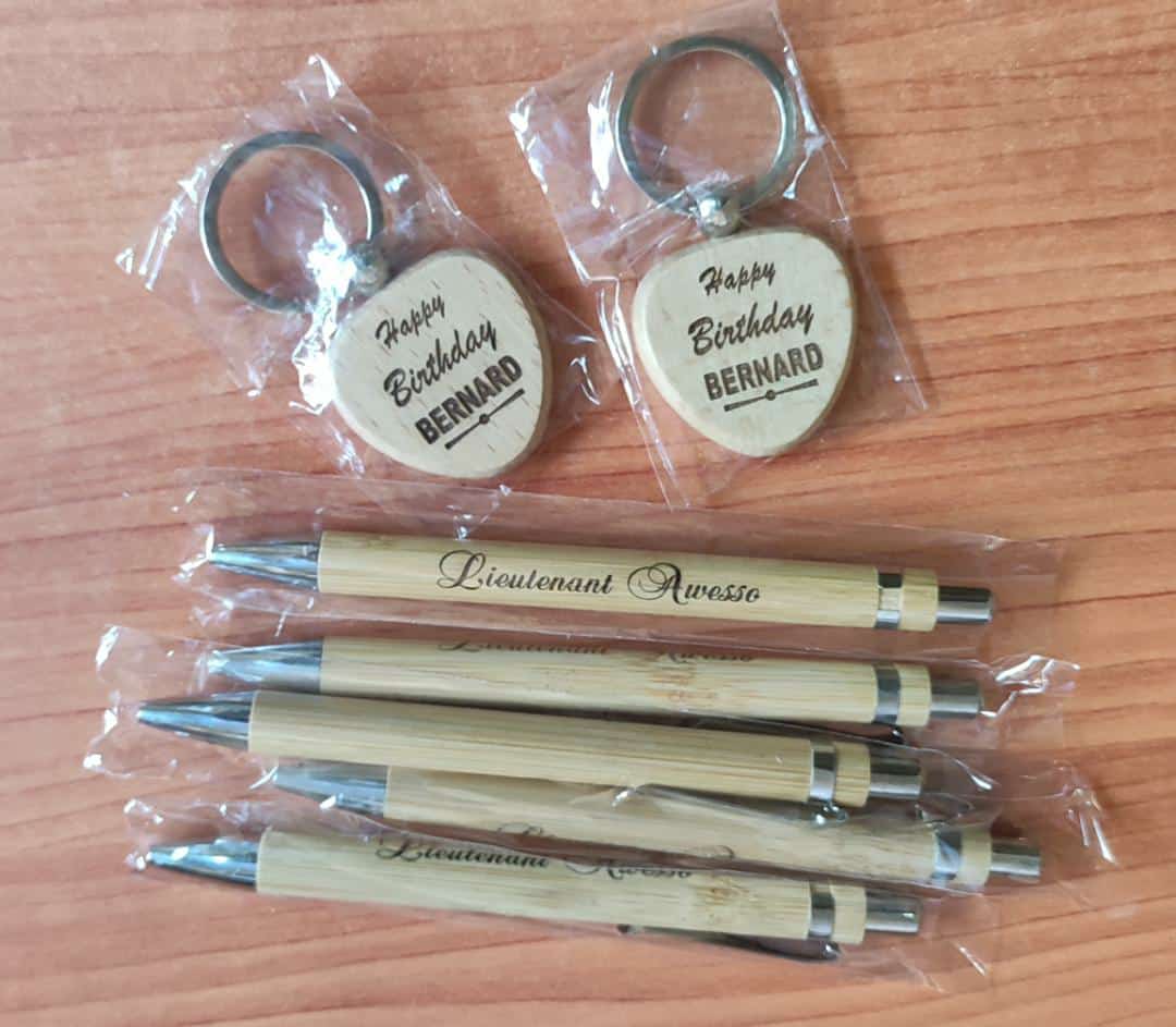 Démarquez vous du commun en apportant une touche spéciale à votre bureau, salon  par de jolis stylo  et porte clé personnalisés en bois confessionnés  par les designs de votre choix. Cela peut servir de cadeau de toutes occasion pour vos enfants, proches, collègues etc