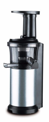 Le jus coule dans le pichet à travers le trou de sortie du jus et la pulpe est éjectée dans