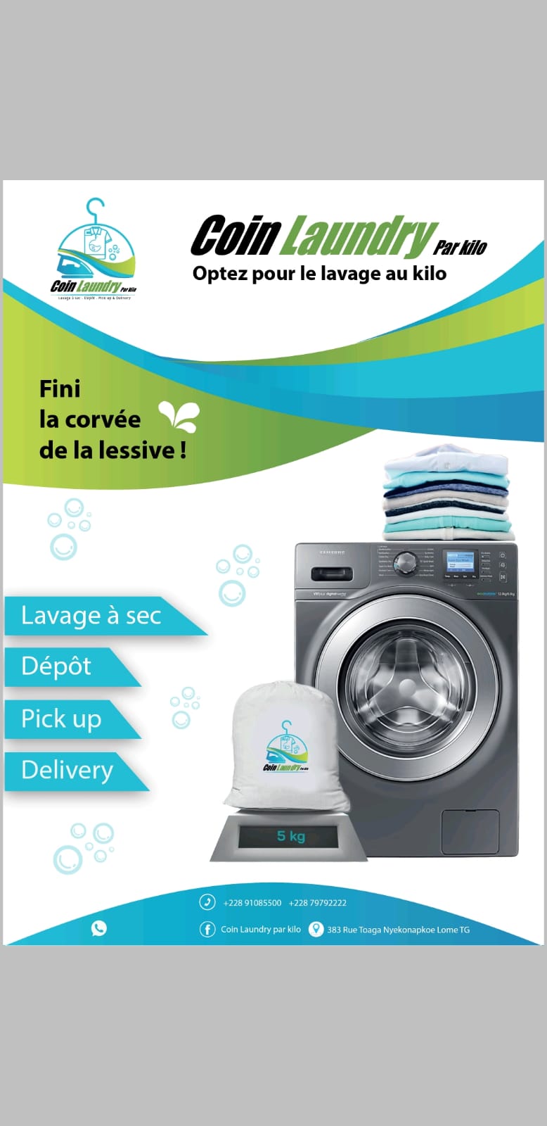 Fini la corvée du linge,fini de trier vos vêtements par couleurs, de les étendre d’attendre qu’ils sèchent et de subir le repassage! Oubliez la machine a laver ou le sèche-linge,avec Coin Laundry Par Kilo et la solution au kilo, votre linge sera toujours impeccable.