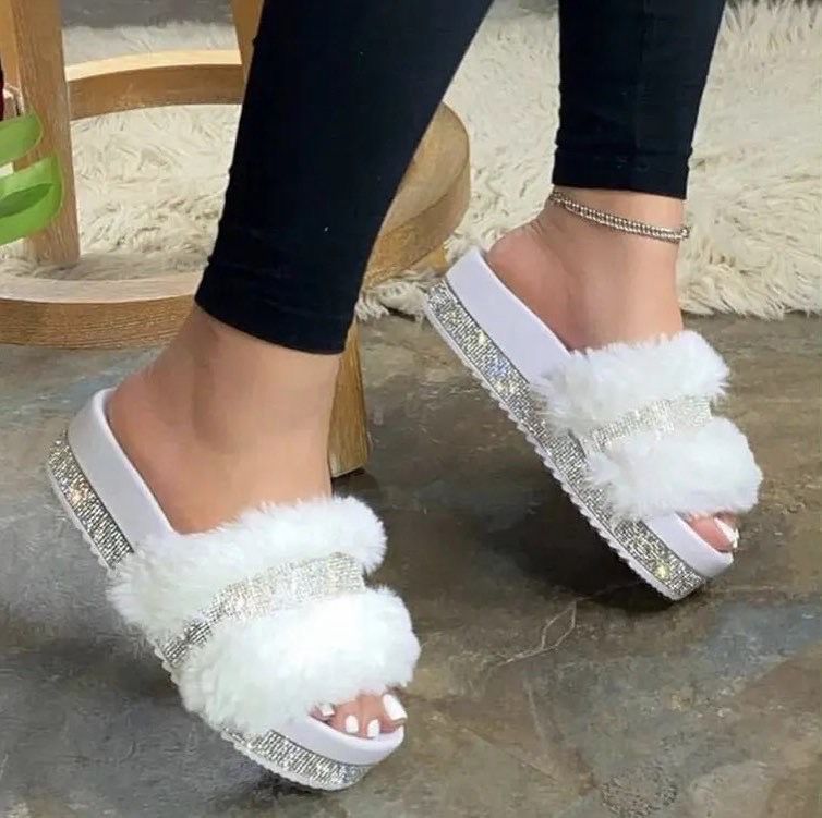 Pantoufles de Luxe Décontractées en Daim Strass pour Femme